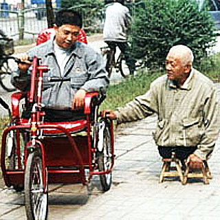原本喧鬧的喫茶店突然間沈寂了下來,大家的眼光紛紛指向入口處;一個行動不便的朋友,拿了一個像是桶子般的東西來當墊腳石,然後用兩隻手撐著,慢慢地爬了進來。門口的台階和地面約莫40公分,雖然不高,但對於行動不便的身障者來說卻是萬分艱辛。看到這情景,不禁想起那輪椅受贈者捎來的感謝函,那個來自身障朋友的內心聲音「沒有輪椅的二十年來,只能在炕上爬來爬去,見不到陽光。若到外面去,又爬的是一身泥濘,有時磨破了皮、割破了手…活的很累很累」, 「收到輪椅的那刻,我高興得看看這、摸摸那….。那一夜,我失眠了,我想了許多,想到將來的美好和打算…………..」、「有了輪椅,便能走出家門,到外面街市做點小生意或從事維修工作,生活得以自理。再也不用為到灶台吃飯而費力地挪動木椅,再也不會因到戶外晾晒衣服而屈辱的連滾帶爬」。